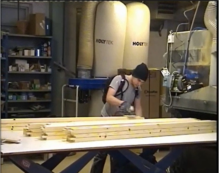 In de filmpjes kan je vaststellen hoe het stofgehalte varieert tijdens de werkzaamheden. Op de onderstaande afbeelding kan je zien hoe de filmpjes opgevat zijn.